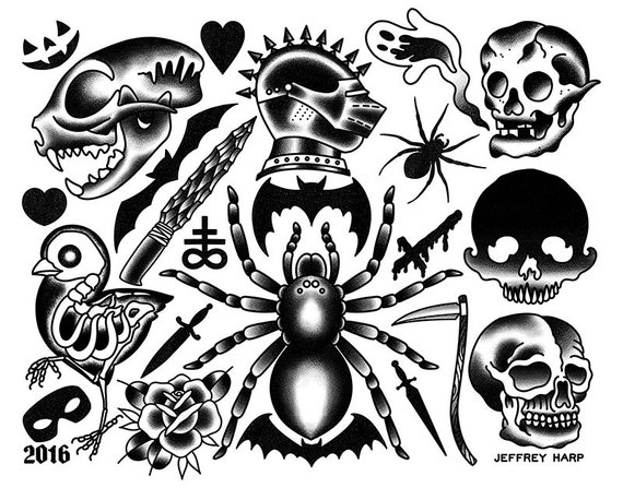 2016 Halloween Tattoo Special Flash Sheet One Etsy